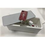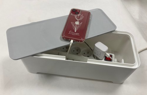 Box jednoduše uzavřete pomocí víka. Na něj odložíte svůj mobilní telefon či tablet připojený k zásuvce. Díky boxu snáze uspořádáte všechny kabely, které využíváte v obývacím pokoji, ložnici nebo třeba kuchyni. Najdete pro něj ovšem vhodné využití i v kanceláři či ve vaší firmě. Schovejte nevzhledné kabely na svém stole a vytvořte si optimální podmínky pro svou práci.