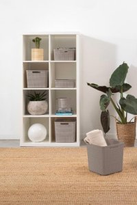 Tento stylový a praktický box se vyrábí ze 100% recyklovaného plastu. Je tedy šetrnější k životnímu prostředí. Jeho provedení připomíná tkaninu a perfektně zapadne do každého prostředí. Doplní vybavení kuchyně, obývacího pokoje, ložnice a klidně i koupelny.