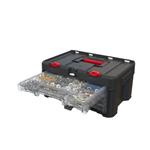 Polykarbonátová uzamykací lišta zajistí pevné uzavření boxu. Jeho obsah se vám tedy nevysype a zůstane v bezpečí. O upevnění organizérů se stará zaklapávací uzávěr. Ergonomická rukojeť a postranní úchyty vám navíc zjednoduší jeho přenášení.