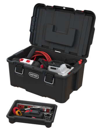 Přihrádka se dá vyjmout, čímž zvětšíte úložný prostor. Poté snadno do boxu uložíte i větší nářadí. Kovové spony zajistí pevné uzavření víka. Obsah boxu se vám tedy nevysype a zůstane v bezpečí. Rukojeť s měkkou gumou vám navíc zjednoduší jeho přenášení.