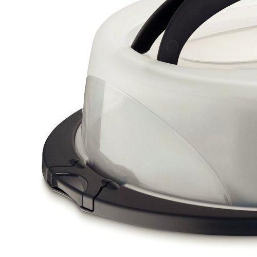 přenosný box na potraviny, ideálně na dort nebo koláč- víko se sklopnými rukojeťmi, šetří místo při převozu nebo skladování- spolehlivé uzavření víka na klipsy pro bezpečné přenášení a transport- barva: transparentní / antracit- materiál: PP plast- rozměry: 32 x 10 cm