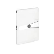 Poloprůhledný tříklopý box na dokumenty a tiskoviny formátu A5 Zavírání na gumičku Materiál: polypropylen Šíře hřbetu 2,5 cm; kapacita 250 listů A5 Rozměry: 25,0 x 17,5 cm (š x v)