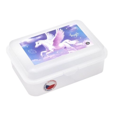 Plastový box na svačinu. Vhodné do myčky, pro ohřev v mikrovlnce nechejte box otevřený.