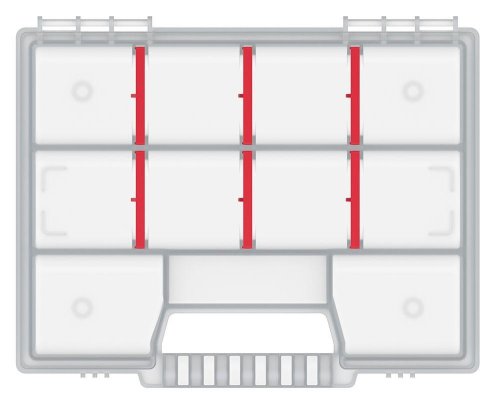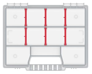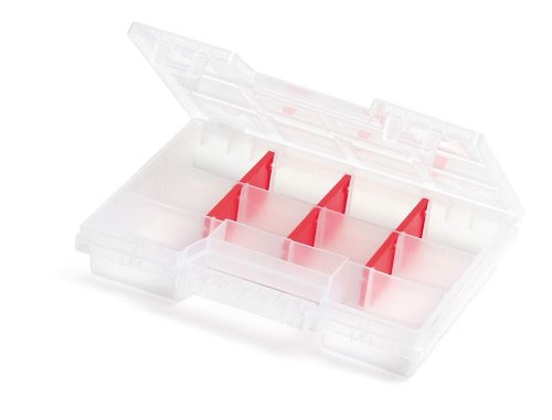 Průhledný organizér. Rozměry: 195x155x35 mm Počet přihrádek: 11 Hmotnost: 125 g Materiál: Plast Množství v balení: 48 ks