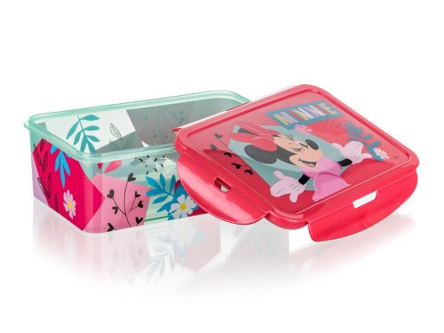 Dětský svačinový box s motivem MINNIE se zavírá pomocí klipsu, který zajistí, že se vám nic nevysype. Díky silikonu zůstavájí potraviny déle čerstvé. Box je vhodný do školy tak i na výlet.
