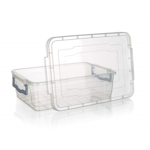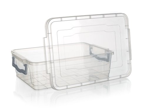 objem: 7 l rozměry: 37 x 25 x 12 cm materiál: plast barva: transparentní box, šedé klipy