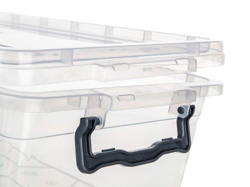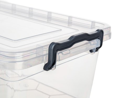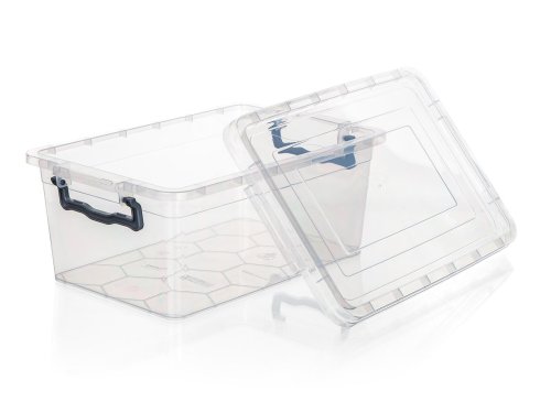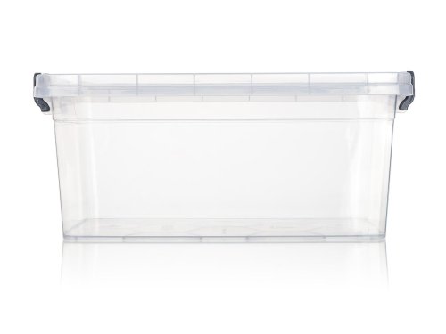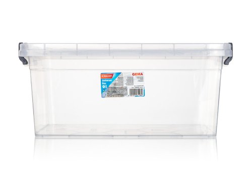 objem: 9 l rozměry: 36,5 x 24,5 x 15,5 cm materiál: plast barva: transparentní box, šedé klipy