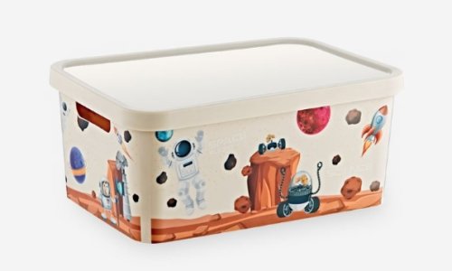 Kvalitní plastový box s víkem a dekorem pro děti na ukládání hraček, sešitů apod. Rozměry 18 x 26 x 11 cm. Dekor dle skladové dostupnosti. EAN 8697806192378