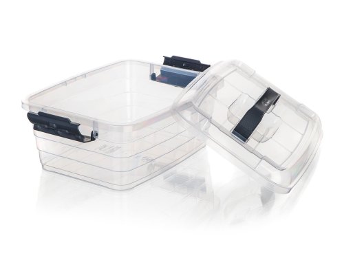 objem: 5 l rozměry: 29 x 22 x 13 cm materiál: plast barva: transparentní dóza, kouřové ucho a klipy