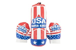 Dětský boxovací pytel a rukavice s motivem americké vlajky. Velikost 10x33 cm. Vhodné od 3 let.