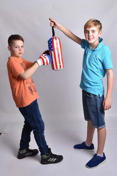 Boxovací pytel i s rukavicemi, kterou padnou na dětské ruce. Lze zavěsit do dětského pokoje.