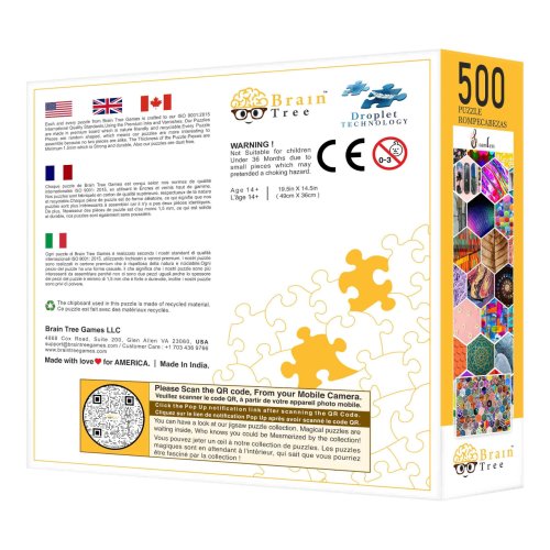 Video je pouze ilustrační, zobrazuje příbuzný produkt.   Puzzle Brain Tree Vás ihned zaujmou prvotřídním potiskem a zpracováním povrchu. Matná úprava je zárukou, že i ty nejmenší multireliéfní detaily obrázku budou za měnících se světelných podmínek dokonale viditelné. Dílky jsou nejen příjemné na dotek, ale nabízí také vysokou otěruvzdornost, sestavování si proto budete moci užívat stále znovu a znovu. Oproti běžným skládačkám, jejichž dílky jsou vyřezány do vzoru mřížky a mají všechny přibližně stejný tvar, jsou dílky puzzle Brain Tree řezány náhodněji. Nabízejí tak širokou paletu rozmanitých, mnohdy překvapivých tvarů, které do skládání vnáší nevšední, dobrodružný rozměr a zábavu. Každý dílek je unikátní! V každém balení naleznete plakát s odpovídajícím obrázkem vytištěným ve stejné kvalitě jako samotné puzzle. Součástí je také několik praktických skládacích kartónových přihrádek, které můžete využít při třídění dílků. Užitečným doplňkem dodávaným spolu se skládačkami je papírový stojan, do kterého můžete usadit víko krabice, abyste mohli při stavbě pohodlně nahlížet na vzorový obrázek.   Hlavní vlastnosti:500 precizně vyřezaných dílků náhodných tvarůvysoce kvalitní potisk, odolná povrchová úpravaplakát formátu 52×30 cm s odpovídajícím obrázkemkartonové přihrádky pro přehledné tříděnístojan na víko krabice pro větší pohodlí při skládání