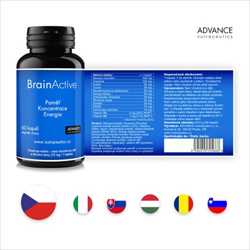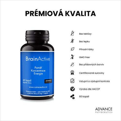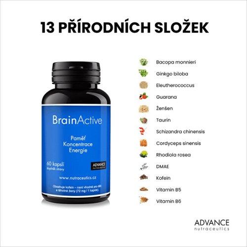Doplněk stravy BrainActive je komplexní mozkový stimulant, který obsahuje 13 přírodních látek. Má pozitivní účinky na paměť, kognitivní schopnosti a soustředění. Dále podporuje energii, odolnost vůči stresu a zlepšují váš mentální výkon.