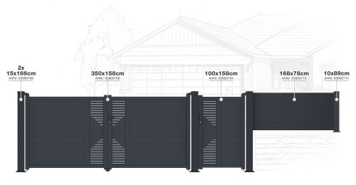 - Moderní hliníkové branky, brány a plotová pole řady G21 Marion kombinují robustnost s lehkostí, což zajišťuje dlouhou životnost a odolnost vůči povětrnostním vlivům.