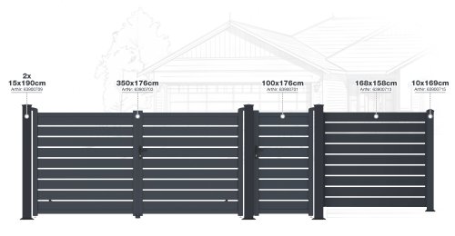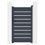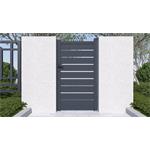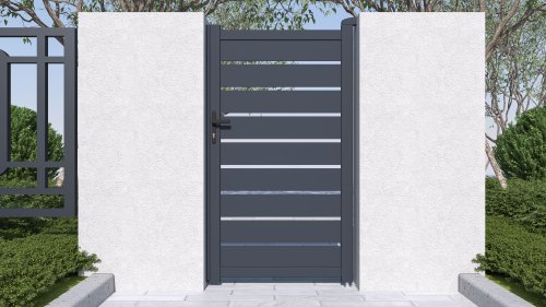 Výplň s horizontálně uloženými lamelami v atraktivním grafitovém provedení kombinuje dostatek soukromí s moderním designem, takže branka s otevíráním dovnitř bude slušet každému typu oplocené stavby.