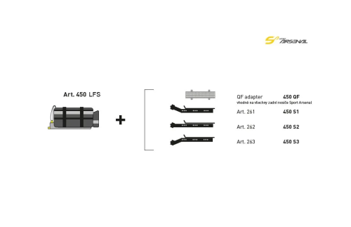 Na klasické zadní nosiče Sport Arsenal nebo přední nosič art.203 Sport Arsenal lze tuto brašnu použít po přidání adaptéru Art.185 QF . Originální QuickFix systém přináší jednoduché, rychlé a spolehlivé uchycení brašny k nosiči.