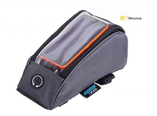 Brašna na přední část rámu pro smartphone, powerbanku apod. Praktická objemná brašna na veškeré nezbytnosti, které je třeba mít stále na očích (mobilní telefon, kompaktní fotoaparát, peněženka, klíče, nářadí).