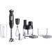 Výkon 1000 W 25 rychlostí + Turbo Technologie PowerBellVplusse speciálním designem zvonu pro jemnější výsledky mixování EasyClick Plus systém pro rychlou výměnu příslušenství SplashControl proti rozstřiku surovin během mixování Ergonomická rukojeť Příslušenství 500 ml mini food processor s vyměnitelnými disky na krájení a strouhání 500 ml sekací nástavec a drtič ledu 2 v 1 Nerezová šlehací metla 600 ml plastová mixovací nádoba Barva černá/nerez