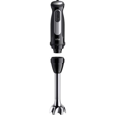 Multifunkčně použitelný tyčový mixér BRAUN najde díky své skladnosti místo v každé kuchyni, přitom s ním hravě vytvoříte řadu lahodně jemných kaší, pyré nebo drceného ledu do osvěžujících nápojů. K mixéru patří i nádoba se sekáčkem, který si poradí s nasekáním všech typů surovin, jako třeba bylinky, semínka či ořechy. Aby mixér výborně plnil všechna očekávání, je opatřen dvoukřídlovou čepelí a motorem s příkonem 1000 W. Pro potřebu extra speciálního výkonu je přidaná turbo rychlost. Rychlost upravíte prostřednictvím 26 nastavitelných stupňů. Rychlost upravíte plynule tlakem na tlačítko. Přidanou hodnotou je i ochrana proti nechtěnému stříkání surovin v průběhu mixování, díky které bezpečně upravíte i horké pokrmy. Zatímco vás tyčový mixér potěší svým vzhledem, kvalitní materiály přispějí k jeho dlouhé životnosti. Výrobce ke zhotovení tyčového mixéru BRAUN použil nerez.