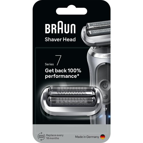 Používejte pouze originální náhradní hlavice Braun, aby nedošlo k poškození holicího strojku Obnovte 100% holicí výkon Pro dosažení optimálního holení doporučujeme vyměnit hlavici elektrického holicího strojku každých 18 měsíců Hlavice 360 ##SkinFlex a 3 flexibilní čepele se přizpůsobí konturám vašeho obličeje pro hladší oholení i na těžko dostupných místech Šetrná k pokožce díky technologii planžet, které chrání pokožku před drobnými poraněními Přejděte na nejnovější hlavici holicího strojku Series 7 Kompatibilní s modely Series 7 generací 70, 71, 72 Snadná výměna pouhým 1 kliknutím Vyrobena v Německu