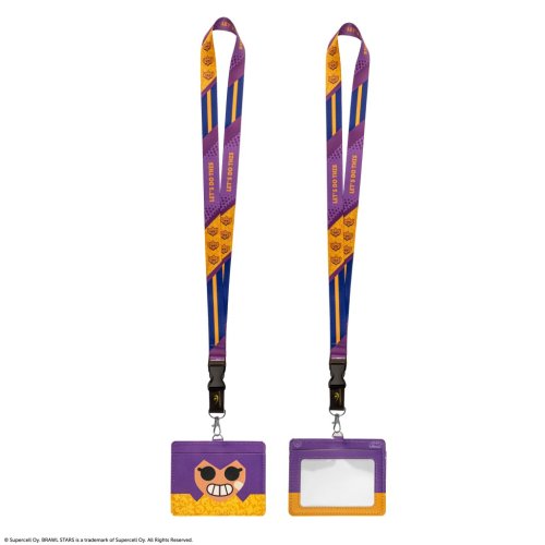 Šňůrka na krk s pouzdrem na kartu s motivem Shelly z populární hry Brawl Stars představuje praktický i stylový doplněk vhodný pro každodenní použití. Pouzdro je vyrobeno z odolného materiálu v zářivých fialovo-oranžových barvách, které zaujmou nejen fanoušky této herní série. Na přední straně pouzdra je výrazná grafika představující obličej postavy Shelly, která je doplněna detaily v podobě výrazných černých brýlí a úsměvu, což dodává celému produktu hravý a výrazný vzhled.