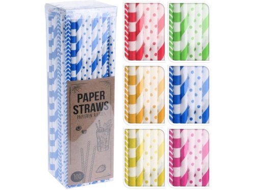 Brčka 6 x 195 mm, papírová, mix barev a dekorů (100 ks).