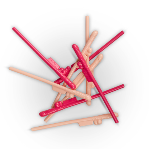 Plastová brčka od značky EasyToys zakončená tvarem penisu.