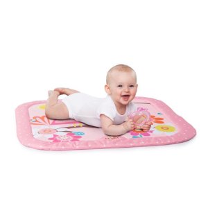 Hravé místo, které dopřeje vašemu miminku zábavu a hodně her podporujících jeho rozvoj a smyslovou stimulaci. Stačí zmáčknout hračku, která hraje 4 sladké melodie nebo zachrastit chrastítkem. Součástí je i bezpečnostní zrcátko, které podporuje u miminka sebepoznání. Hračky jsou přizpůsobeny i na přenášení a můžete je připnout k většině autosedaček a kočárků. Okouzlí vás i krásný design deky plný pestrých barev. Deka se snadno udržuje v čistotě a lze ji prát v pračce. Odnímatelné hrazdičky umožní deku jednoduše složit a uskladnit, tak aby nezabrala mnoho místa.