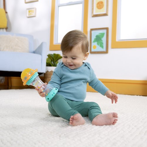 Zažij zářivou radost s hračkou Just for Sun od Bright Starts! Svítící hračka zabaví miminko veselými světly, zvuky zvířátek a chrastícími kuličkami. Otáčej sluneční kopuli, která svítí, a objev více než 30 melodií a zvuků – od mňoukání, přes rýlení až po kvákání a další. Při potřesení se kuličky uvnitř rozkutálejí jako kapky deště, čímž dítě získává další vizuální i zvukovou stimulaci. Spodní strana hračky skrývá zrcátko, které podporuje vnímání vlastního odrazu a sebeobjevování. Tato interaktivní hračka pomáhá dětem pochopit princip příčiny a následku a je ideálním společníkem na doma i na cesty. Perfektní dárek k oslavě narození, Vánoce či narozeniny!