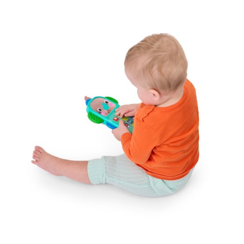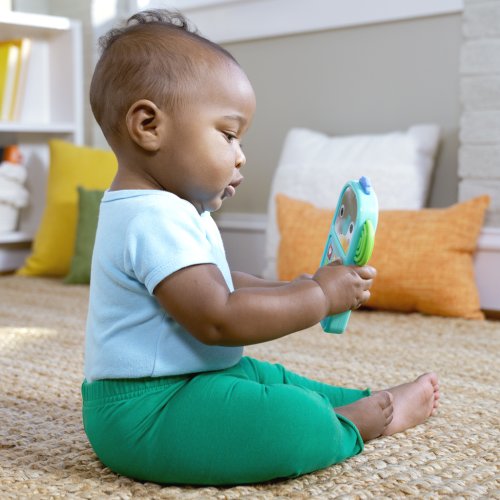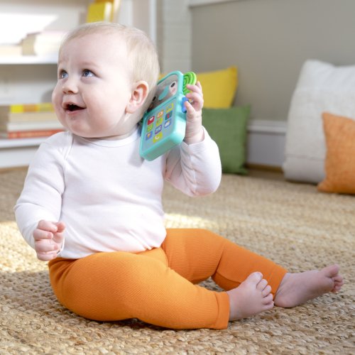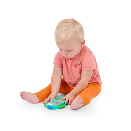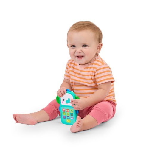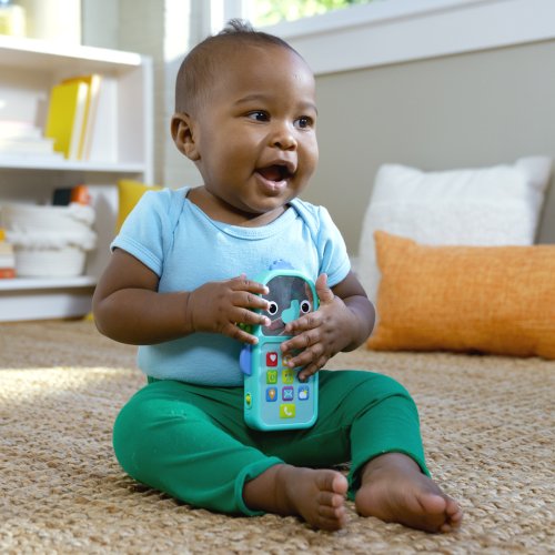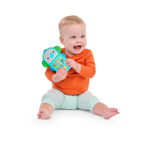 Zábava na telefonu s hudebním slůníkem Bright Starts Elephone™! Tento veselý sloníkový telefon je jako stvořený pro malé ručičky a přináší spoustu zábavy a interakce. Interaktivní klávesnice je plná známých ikonek aplikací a zvuků, díky čemuž se děťátko bude cítit jako máma nebo táta. Každým stisknutím tlačítka se aktivují světýlka a melodie. Rozkošná sloníkova tvářička má svítící líčka a zrcátko pro objevování sebe sama. Jeho ouška jsou texturována pro dodatečnou senzorickou hru a hmatovou stimulaci! Hračka obsahuje více než 20 zvuků a melodií a funguje na 2 AAA baterie (nejsou součástí balení). Díky lehkému a přenosnému designu je ideální pro zábavu na cestách. Jednoduše se vejde do většiny přebalovacích tašek a skvěle doplní sbírku hraček na kočárek. Vhodné pro děti od 6 měsíců. Výborný dárek na křtiny, narozeniny či Vánoce.