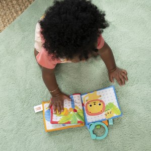 První stránky vašeho miminka se stanou dobrodružstvím se Safari Buddies – měkkou šuštivou knížkou! Tato smyslová hračka zábavnou formou pomáhá dětem objevovat zvířátka ze safari a zároveň podporuje rozvoj sluchu, zraku a hmatu. Každá stránka obsahuje barevné ilustrace zvířat jako opička, lev, slon, lenochod, žirafa a leopard, které děti učí rozeznávat nové tvary a pojmenovat zvířátka. Šustící stránky poskytují zábavnou odezvu při mačkání a stužky různých textur dále stimulují hmat. Díky praktickému C-kroužku můžete knížku snadno připevnit na kočárek, autosedačku nebo dětskou hrazdičku – ideální hračka na cesty!