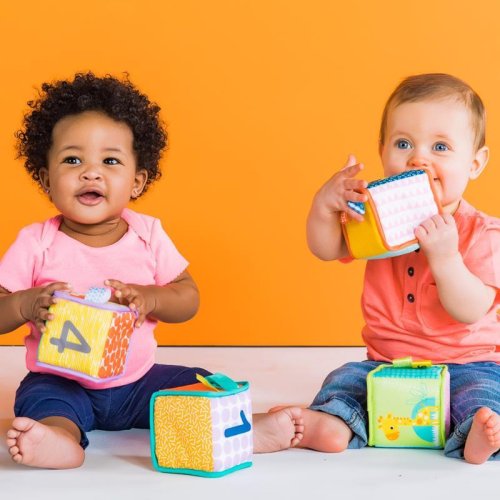 Skládat, stavět a zkoumat s těmito měkkými látkovými kostkami!
