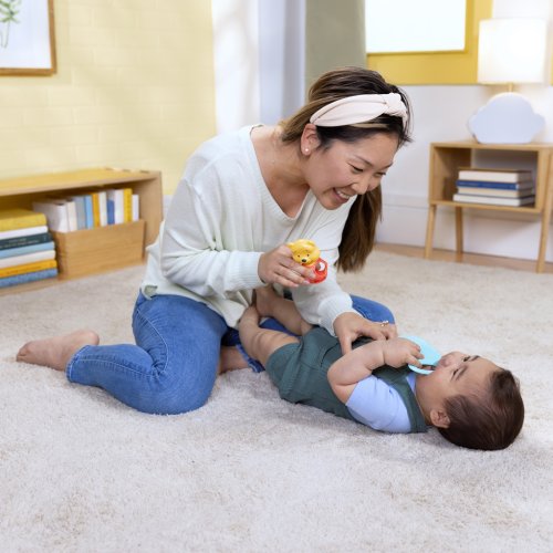 Materiál: – 99% plast a 1% kov. Věkové rozpětí: 0 – 36 měsíců Rozměry produktu: 10 cm x 4,5 cm x 5,5 cm Důležité: Před předáním výrobku dítěti odstraňte veškerý obal a upevňovací prvky. Tento obal a návod k použití si uschovejte pro budoucí použití – obsahují důležité informace. V rámci neustálého procesu zlepšování a inovace naše výrobky průběžně aktualizujeme.