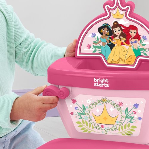 Kouzelný nácvik na nočník pro malé princezny! Proměňte učení na toaletu na pohádkové dobrodružství s Disney Princess, ve kterém se objevují oblíbené princezny Popelka, Bella, Jasmína a Ariel! Tento 2v1 nočníkový systém roste spolu s vaším děťátkem – nejprve slouží jako klasický dětský nočník a později se jednoduše změní na redukci pro toaletu pro dospělé. Realistické zvuky splachování, tleskání a melodie udělají z každého úspěchu radostný moment, který povzbudí vaše dítě k dalšímu pokroku. Součástí balení je 12 samolepek s motivem Disney princezen, kterými si může vaše holčička svůj rozkošný růžový nočník ozdobit podle vlastní fantazie. Díky vyjímatelné nádobě je čištění rychlé a snadné, a zabudovaná zábrana proti vyšplouchnutí a praktické úchyty zajišťují bezpečné a pohodlné používání. Nočník má také praktický úložný prostor na potřebné pomůcky, abyste je měli vždy po ruce. Sedací část pasuje na většinu toalet – kulatých, oválných i D-tvarových. Se snadnou montáží, realistickým vzhledem a pohádkovým designem je tento nočník dokonalou kombinací hravosti a funkčnosti pro každou malou princeznu.