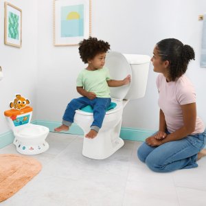 Promění nácvik na nočník v zábavné dobrodružství! Zažijte veselý začátek cesty k samostatnosti s nočníkem, který zaujme každé děťátko oblíbenou postavičkou klauna Nema! Tento 2v1 nočníkový systém roste spolu s vaším dítětem – začíná jako klasický dětský nočník a později se jednoduše přemění na redukci pro toaletu pro dospělé. Realistické zvuky splachování, veselé melodie a povzbuzující tleskání udělají z každého úspěchu velkou událost. Součástí balení je 12 tematických samolepek s motivem Nema, kterými si může vaše děťátko svůj nočník vyzdobit a zpříjemnit si tak učení na toaletu. Vyjímatelná nádoba zaručuje rychlé a snadné čištění, zatímco zabudovaná zábrana proti vyšplouchnutí a pevné úchyty zajišťují pohodlí a jistotu při používání. Nočník má také praktický úložný prostor pro všechny drobnosti potřebné během nácviku a sedací část pasuje na většinu typů toalet – kulaté, oválné i D-tvarové. S lehkou montáží, realistickým vzhledem a zábavným designem je tento nočník stejně praktický i hravý.