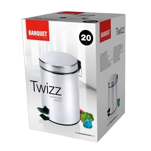 Odpadkový koš TWIZZ 20 l, nerezové provedení, vnější povrch - lesk, vnitřní vyjímatelná nádoba na odpad je vyrobena z plastu. Koš má nášlapný systém na otevírání víka pro hygienickou manipulaci.