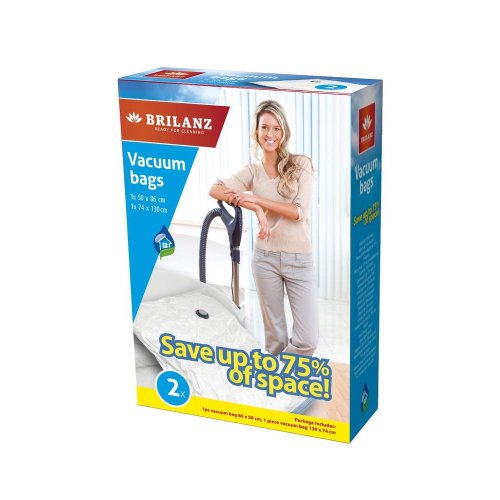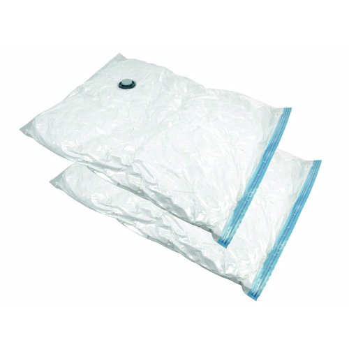 2dílná sada vakuových vaků obsahuje 2 vaky o rozměrech: 130 x 74 cm a 86 x 50 cm. Vaky jsou vhodné na uskladnění textilu. Po odsátí vzduchu jsou dobře skladné, chrání oděv proti molům a vlhkosti. Hodí se jak do domácnosti, tak na chaty a chalupy. Vaky jsou vyrobeny z nylonu polyethylenu, tloušťka materiálu je 0,07 mm.