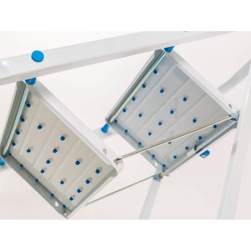 Jednostranné 2 stupňové kovové schůdky pro domácnost jsou určeny pro všestranné použití. Schůdky mají bezpečné protiskluzové nášlapy a nohy jsou opatřeny protiskluzovými koncovkami. Maximální nosnost je 150 kg. Nášlapný schůdek 30 x 20 cm. Výška horního schodu je 46 cm a celková výška 82 cm.