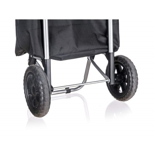 Nákupní taška na kolečkách je pomocníkem při těžších nákupech zejména pro starší občany a ženy. Objem tašky je 30 l a maximální nosnost 30 kg. Textilní taška je snadno odnímatelná z kovové konstrukce a snadná na údržbu. Taška na kolečkách má ergonomickou rukojeť a konstrukce tašky je zpevněná kovovou odkládací plochou, která stabilizuje celý výrobek. Plastová kolečka umožňují jednoduchý pohyb po jakémkoli povrchu. Součástí tašky je tepelně izolovaná kapsa pro delší uchování mražených nebo nebo teplých potravit.