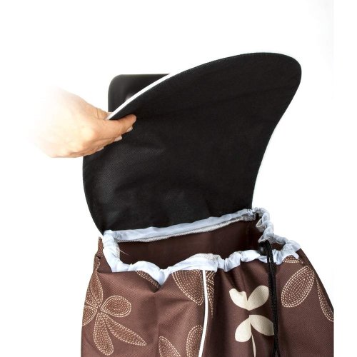 Nákupní taška na kolečkách je pomocníkem při těžších nákupech zejména pro starší občany a ženy. Objem tašky je 30 l a maximální nosnost 30 kg. Textilní taška je snadno odnímatelná z kovové konstrukce a je lehce omyvatelná. Taška na kolečkách má ergonomickou rukojeť a konstrukce tašky je zpevněná kovovou odkládací plochou, která stabilizuje celý výrobek. Plastová kolečka umožňují jednoduchý pohyb po jakémkoli povrchu.