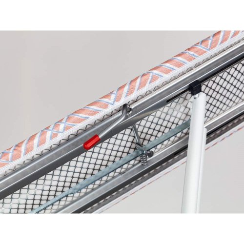 Žehlicí prkno BASIC, rozměry: 110 x 30 cm, kovová deska Mash, podložka 5 mm, kovová odkládací plocha na žehličku, bílá povrchová úprava konstrukce, nastavitelná výška max.90 cm, váha 3,5 kg. Průměr nohou 20 mm, síla materiálu 0,7 mm.