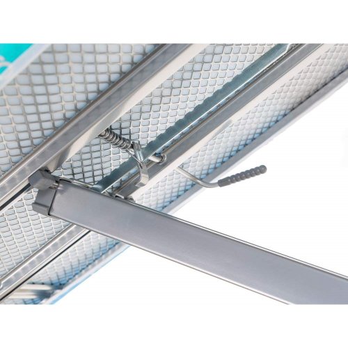 Žehlicí prkno PROFESSIONAL o rozměrech 130 x 48 cm je opatřeno kovovou deskou Mash, která dobře propouští páru a zajišťuje, že prádlo zůstane suché. Stabilní konstrukce žehlícího prkna zajišťuje bezpečné žehlení. Pevná žehlící deska umožní snadné žehlení i velkých kusů prádla. Žehlící prkno je vybaveno integrovanou elektrickou zásuvkou, odkládacím prostorem pro parní žehličku a plochou pro vyžehlené prádlo. Součástí žehlicího prkna je také rukávník - mini žehlicí prkno, které vám usnadní žehlení úzkých rukávů. Galvanizovaná konstrukce zajišťuje dlouhou životnost žehlícího prkna. Nastavitelná výška prkna je 73 - 99 cm. Průměr nohou 35 x 20 mm / síla materiálu 0,8 mm.