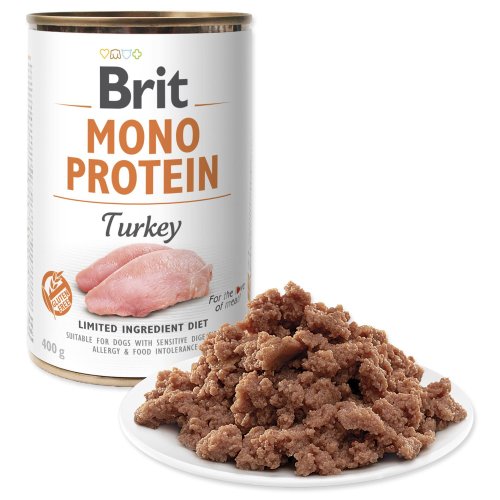 Monoprotein – konzerva obsahuje pouze maso a vnitřnosti z jednoho živočišného zdroje. Nalezení toho, co škodí psům s citlivým zažíváním, intolerancí nebo s alergií, může být běh na dlouhou trať, ve kterém nám mohou pomoci konzervy s jedním druhem proteinu. Vylučovací metodou lze snadno vyřadit vše škodlivé. Protože někteří psi s citlivým zažíváním špatně tráví větší kousky masa či vnitřností, mají konzervy Brit Monoprotein konzistenci jemného paté – lépe se tráví a snadno je přijímají také psí senioři, kteří mají problém se zuby. Hlavní přednosti: