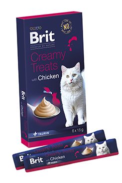 Brit Premium by Nature Cat Krémové pamlsky s kuřetem. Doplňkové krmivo pro dospělé kočky.