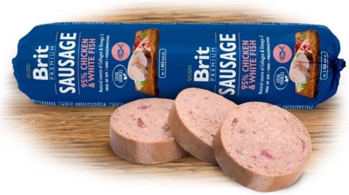 Brit Sausages jsou jedinečnou kombinací skutečných kousků masa a lehkého, výtečného paté. Vysoký obsah masa 95 % zajišťuje skvělou chuť a výbornou stravitelnost. Široká škála rozmanitých chutí nabízí příjemné zpestření psího jídelníčku a je vhodným doplňkem ke granulím, BARF stravě i vařenému masu.