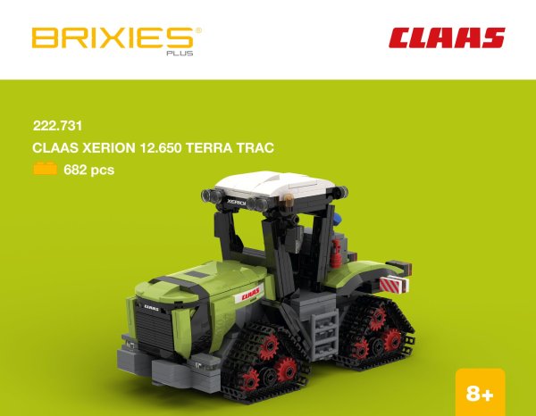 Sestavte si vlastní pásový traktor CLAAS Xerion 12.650 TERRA TRAC ze stavebnice BRIXIES Plus a poznejte, jak vypadá výkon a preciznost – v malém i velkém měřítku!