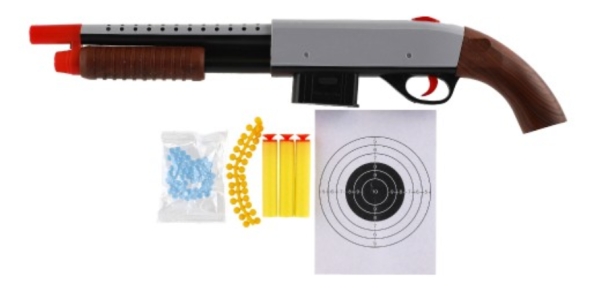 Brokovnice na pěnové náboje, vodní i gumové kuličky zabaví každého pistolníka. Vlož kuličky, nabij, zamiř a střílej! Rozměr pistole: 46 cm Rozměr krabičky: 46 x 14 x 4 cm Vhodné pro děti od 8 let