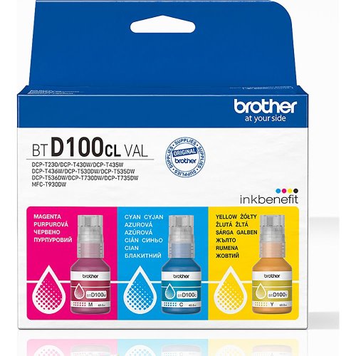 Brother BTD100CLVAL CMY inkoust vhodný pro tiskárny DCP-T230,430W,435W,436W,530DW,535DW,536DW,730DW,735DW,MFC-T930DW