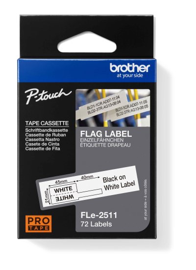 Klíčové vlastnosti *Černý text na bílém předřezaném štítku *45 mm x 21 mm při tisku, 45 mm x 10,5 mm při nalepení *72 štítků na jedné pásce *Vysoce kvalitní originální štítky Brother *Jasné a trvanlivé výsledky
