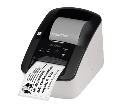 Tiskárna na papírové samolepící štítky nebo filmové role s automatickým odstřihem. Tento přístroj je možné použít pouze se spotřebním materiálem společnosti Brother (DK role / štítky).